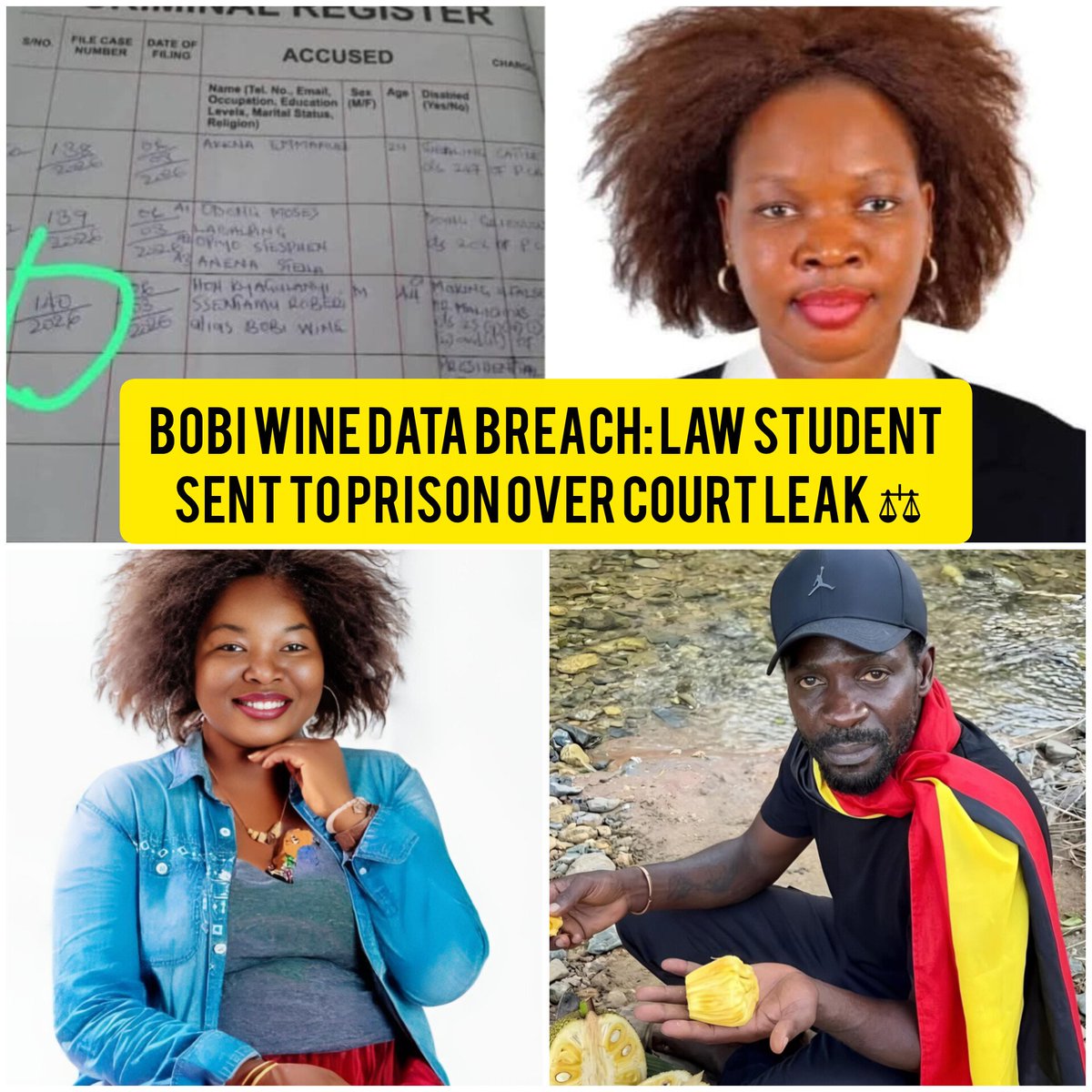 A court intern attached to the High Court in Gulu has been remanded to prison over allegations of sharing court records linked to a criminal case involving opposition leader Robert Kyagulanyi.